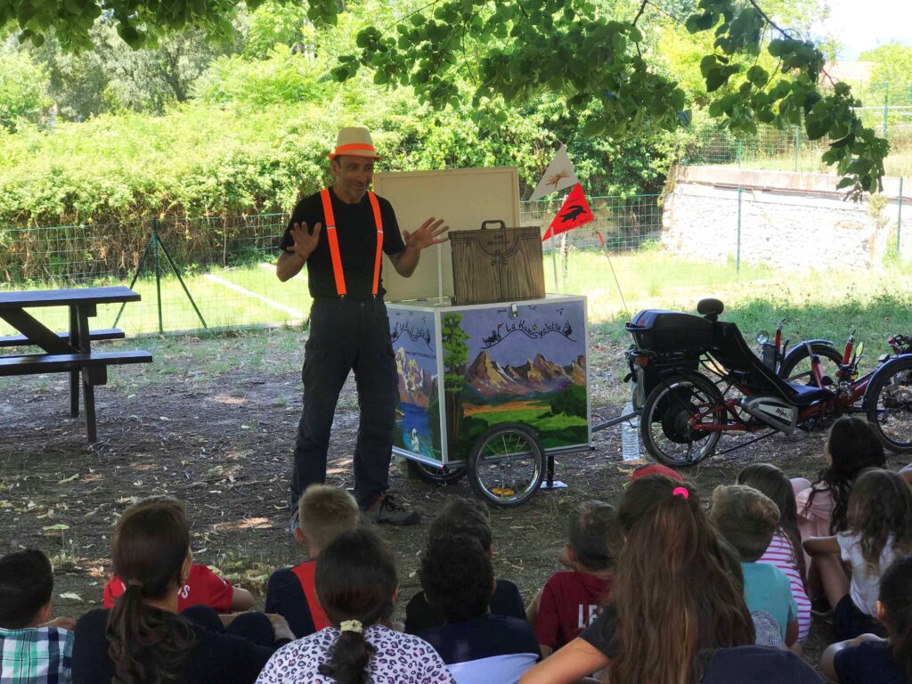 La KAMICYCLETTE est un spectacle de Kamishibaï (petit théâtre japonais) qui a choisi la mobilité douce pour aller à la rencontre du public et conter avec humour de drôles d’histoires autour de l’environnement, de l’eau et du fleuve.